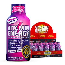 Vitamin Energy Immune+ Extra Strength Energy Shot Grape 12 Pack, 260mg Natural Caffeine, B-Vitamins, Citicoline, Green Tea, Immunity & Focus Support, Zero Sugar, Gluten-Free 1.93 fl oz