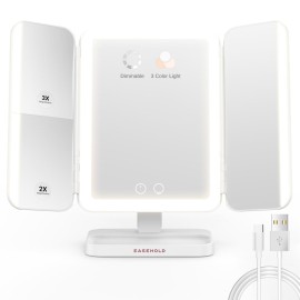 EASEHOLD Vanity Mirror with Lights, 2X 3X Magnification, Trifold, Rechargable, Touch Control - Gifts for Girls & Women