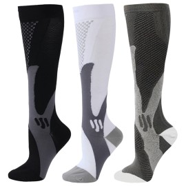 ZFiSt 3 Pair Sport Compression Socks Men Women, Compression Stocking Nurse Socks for Edema Travel(Black+white+grey,XXL)