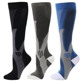 ZFiSt 3 Pair Sport Compression Socks Men Women, Compression Stocking Nurse Socks for Edema Travel(Black+blue+grey,XXL)