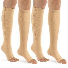PRODUCT DETAILS - Zipper Compression Socks - 2pair Calf Knee High Stocking-Open Toe Compression Socks for WalkingRunnngHiking and Sports UseTry these open toe compression socks with zipper and enjoy all-day comfort now!Always struggling with tired legs and swollen ankles because you have all day standing or sitting work?Are you or your family still..