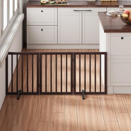 STYLISH DOG GATE FREESTANDING:Made of high quality Bamboo, the folding dog gate has a sleek modern style and a chic walnut finish that is sure to complement any decor. this stylish pet gates for dogs will block kitchen doorways, bedroom doorways, front doorways, hallways and staircases in your home and looks great with your modern home furniture ST..