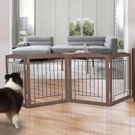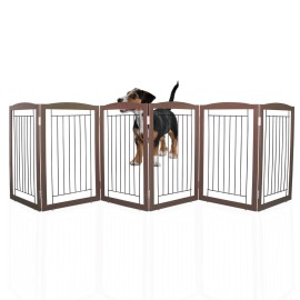 ZJSF Freestanding Foldable Dog Gate for House Extra Wide Wooden Brown Puppy Gate Stairs Dog Gates Doorways Tall Pet Gate 32 Height 6 Panels Pet Fence