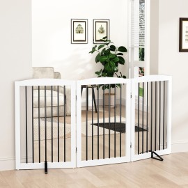 PUPETPO Freestanding Pet Gate for Dogs, Foldable Wooden Dog Gate for House Indoor, Tall Pet Fence for Stair, Doorway,Hall, Support Feet Included, 3 Panels 32,White