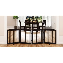 PUPETPO Freestanding Pet Gate for Dogs, Foldable Wooden Dog Gate for House, Indoor Dog Gate for Stair, Doorway, Gates for Dogs Indoor, 80 Inch Wide, 4 Panels 24,Brown