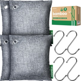 Activated Charcoal Odor Absorber, Odor Eliminator for Strong Odor,Bamboo Charcoal Air Purifying Bags for Home Car Closet Pet, Smoke Room Deodorizer (4 x 200g, Unscented)