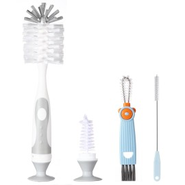 Ariseno 4-in-1 Baby Bottle Brush Set - Including Brushes for Bottles, Straws, Caps, & Nipples - BPA-Free (Grey)