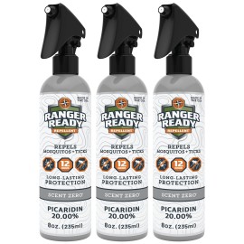 Ranger Ready Repellents Picaridin Insect Repellent Spray with Scent Zero - Tick and Mosquito Repellent Bug Spray (8 Fl Oz, Pack of 3)