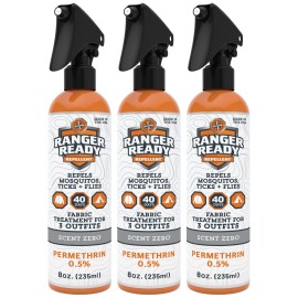 Ranger Ready Permethrin Spray for Clothes and Outdoor Gear - Permethrin Insect & Tick Repellent - Scent Zero (8oz, Pack of 3)