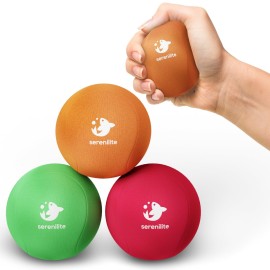 Serenilite 3 Ball Bundle Green, Orange, Red - Stress Balls, Anxiety Relief Items, Grip Strength Trainer, Meditation Accessories, Physical Therapy Equipment, Fidget Ball, Stress Balls for Adults
