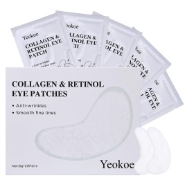 Yeokoe Under Eye Patches for Dark Circles,Puffy Eyes,20 Pairs Face Masks SkinCare With Collagen and Retinol for Anti wrinkles Smooth Fine Lines