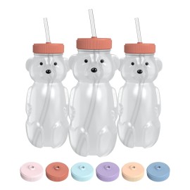 The 730 Project Honey Bear Straw Cup for Babies, 8-oz Honey Bear Cup with Lid, 3-Pack Therapy Learning Honeybear Straw, Baby Bottle Set, Creamsicle PEACH
