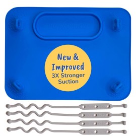 BUSY BABY Silicone Mat - New and Improved Suction Cups, 4 Straps to Secure Baby Essentials, Self Feeding, Baby Led Weaning, Travel Sleeve Included (Blue)