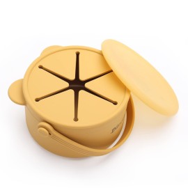 Dilovely Snack Cups for Toddlers, Baby Snack Containers, Silicone Toddler Snack Cups No Spill, Food Catcher with Lid & Bucket-like Handle, BPA Free & Dishwasher Safe, 9 Ounce Mustard