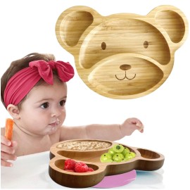 Bamboo Plates for Kids - Baby & Toddler Plates with Suction for Feeding & Weaning, Eco-Friendly Bear Design Promotes Self-Feeding, Ideal for Busy Moms & Dads, Sturdy & BPA-Free (Blue)