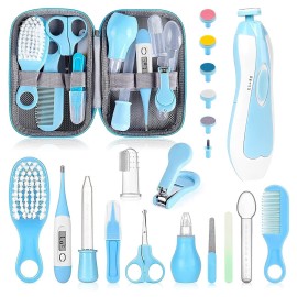Baby Grooming KitElectric Safety Nail Trimmer Baby Nursery KitInfant Safety Care Set with Hair Brush Comb Nail Clipper Nasal Aspirator,Baby Essentials Kit for Newborn Girls Boys (21 PC-Blue Kit)
