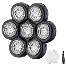 7 Blades Head Men\'s Electric Shaver Replacement Heads Floating Washable Shaver Replacement Blades for Bald Men (Black)