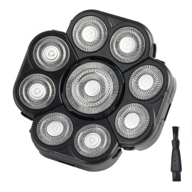 New upgrade: Our Head Shaver replacement heads with 9 blade heads, larger contact surface . Electric razor blade replacement is made of double ring anti-allergy stainless steel,sharp blade head, closer to the skin, shaving more clean and fast,cleaner trim without irritating the skin...