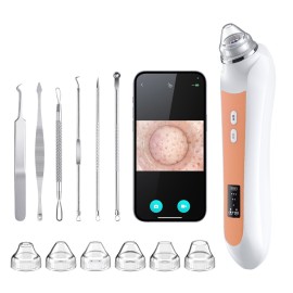 Facial Pore Blackhead Remover Vacuum, 1080P Camera Blackhead Remover, 20x Zoom, 8 LEDs 3 Suction Modes, 800mAh Battery & USB - 6 Heads Pore Cleaner Kit for Women&Men(Orange)
