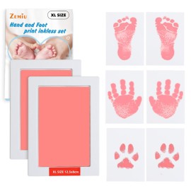 Zemiu 2 Pack Large Clean-Touch Ink Pads, Baby Handprints and Footprints for 0-18 Months, Inkless Hand and Footprint Kit,Baby Print,DIY Newborn Keepsake Gifts,Cat/Dog Paw Print Kit-Pink