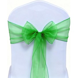 Elegant Organza Chair Sashes Sheer Fabric Sashes for Weddings, Parties, and Special Events - (Pack of 10 Pieces, Green)