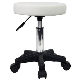 FURWOO Round Rolling Stool Height Adjustable Stool with Wheels for Spa Salon Massage White