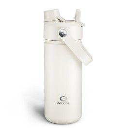 ENCOOL Insulated Water Bottle with Straw Stainless Steel Water Bottle, Leak-Proof, BPA-Free, Double Wall Vacuum Keeps Cold for 24 Hours for Sports, Travel, School (18 oz, Cream Moon)