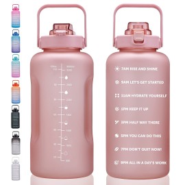 ST-YIBEN 128oz Large Motivational Water Bottle with Time Marker,Leakproof & BPA Free 1/One Gallon Big Pink Water Bottle with Straw & Handle Tritan Water Jug for Women Men to Fitness,Gym,Sports