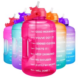 QuiFit 1 Gallon Water Bottle - with Straw & Motivational Time Marker Leak-Proof BPA Free Reusable Gym Sports Outdoor Large(128OZ) Capacity Water Jug(Pink,1 Gallon)