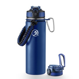 GOSWAG Insulated Sports Water Bottle, 24oz 2 Lids(with Straw/No Straw), Stainless Steel Water Bottles with Paracord Handle, Insulated Bottle with Double-Wall Vacuum Insulation