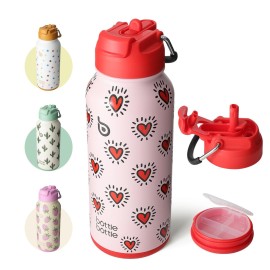 BOTTLE BOTTLE 32oz Insulated Water Bottle Stainless Steel Sport Water Bottle with Straw Dual-use Lid Design for Gym with Pill Box (Heartbeats)