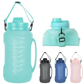 Collapsible Water Bottles, 2L/64OZ travel water bottle Bottle with Straw, Half Gallon Large Water Bottle for Travel Outdoor Sports Runing Fitness Yoga (Upgraded Snow Cyan)
