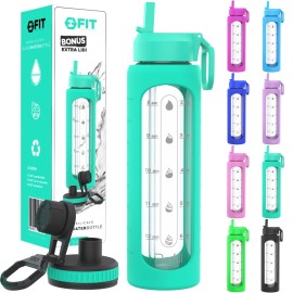The FIT Strong & Healthy 32 oz glass water bottle features a durable borosilicate glass construction with an extra-thick silicone sleeve for protection, insulation, and a secure grip. Choose from a variety of colorful, removable sleeves to personalize your bottle. The upgraded straw lid makes sipping easy, and the wide mouth design allows for easy ..