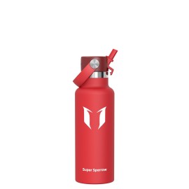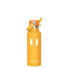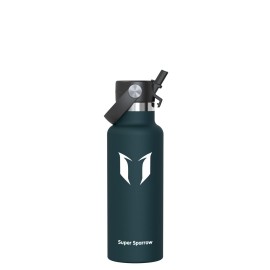 Super Sparrow Insulated Water Bottle - 17 Oz - Standard Mouth FlipFlow Flask - BPA Free, Leak Proof Drink Bottle- Ergonomic Straw Water Bottles for Work, Gym, Travel, Sports
