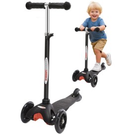 ChromeWheels Scooter for Kids, Deluxe 4 Adjustable Height 3 Wheels Glider with Kick, Lean to Steer with LED Flashing Light, Black