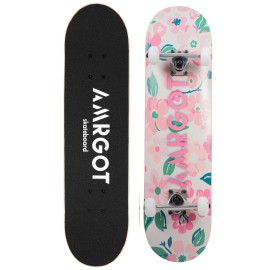 Amrgot Skateboards for Beginners,31 * 8 inches Complete Skateboards for Kids,Boys,Girls and Adults,7 Layer Maple Wood,Double Kick Deck Concave Standard and Tricks Skateboard (Flower)