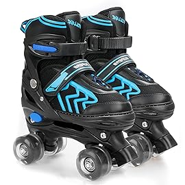 Kids Roller Skates for Boys Adjustable Roller Skates for Boys, Girls with 8 Wheels Lighting for Indoor Outdoor Quad Skates (Black&Blue, Medium - Big Kid)