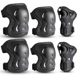 Kids/Youth/Adult Knee Pads Elbow Pads with Wrist Guards Protective Gear Set 6 Pack for Roller Skating Skateboard Cycling Skating Bike Scooter Riding Sports
