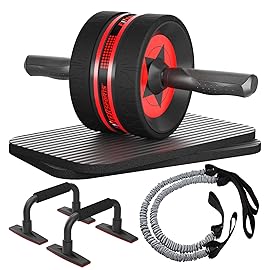 EnterSports Abs Roller Wheel Kit, Exercise Wheel Core Strength Training Abdominal Roller Set with Push Up Bars, Resistance Bands, Knee Mat Home Gym Fitness Equipment for Abs Workout