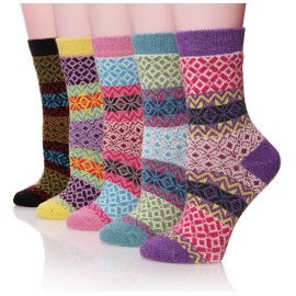 ProEtrade Women Wool Thick Winter Socks 5 Pairs Warm Crew Socks (Snowflake) Snowflake Free