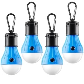 FLY2SKY Tent Lamp Portable LED Tent Lights Blue 4 Packs Hook Hurricane Emergency Lights LED Camping Lights Bulb Camping Tent Lanterns Camping Equipment for Camping Hiking Backpacking Fishing Outage