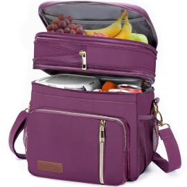 MIYCOO Lunch Bag & Lunch Box for Women Men, Double Deck Leakproof Insulated Soft Large Adult Camping Cooler bag for Work, Beach, Picnic, Travel (Purple, 15L)