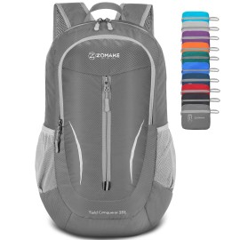 ZOMAKE Ultra Lightweight Hiking Backpack 20L, Packable Small Backpacks Water Resistant Daypack for Women Men(Medium Grey)
