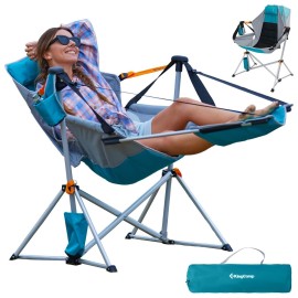 KingCamp Hammock Chair with Footrest, Swinging Portable Folding Camping Chairs for Adults MAX 400lbs Heavy Duty Foldable Oversized Rocker with Cup Holder Pillow for Outdoor Beach Patio Sport Lawn
