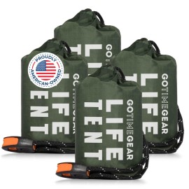 Go Time Gear Emergency Survival Tent Shelter - Reflective Mylar Winter Camping Shelter, Ultralight Bivy Tent for Hiking & Go Bag, Whistle & Survival Tools, 2-Person, Pack of 4, Green