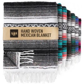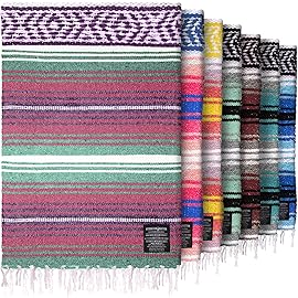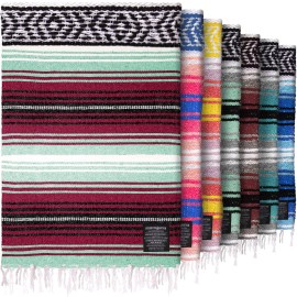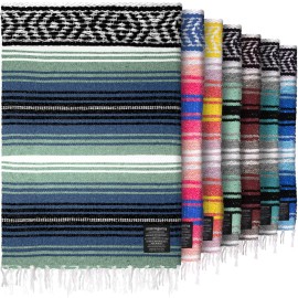 Authentic Extra Large Mexican Blanket - 70x50 Handwoven Yoga, Serape, Artisanal Falsa, Beach, Camping, Picnic, Outdoor Blanket (Oxford)