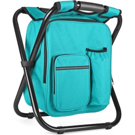 Kikerike Backpack Stool Cooler Chair Heavy Duty 300 LBS Max Load Portable Lightweight Stool Backpack Folding Fishing Cooler Seat for Camping Hunting Fishing - Blue-Green