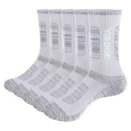 YUEDGE Men\'s Performance Cotton Moisture Wicking Work Boot Sports Hiking Workout Training Cushion Crew Socks 6-9, 5 Pairs