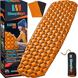 Sleepingo Inflatable Mat - Ultralight Sleeping Pad for Camping and Backpacking - Compact Air Mattress - Camp Mat with Tear-Resistant Ripstop Nylon - 73.5 x 21.5 Inches, Black and Orange