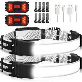Rechargeable Headlamp, 230Wide-Angle 1000 Lumens Headlamp Flashlight with Red Taillight 3 Light Modes Lightweight LED Head Lamp Adjustable Waterproof Head Light for Running Cycling (Black(2-Pack))
